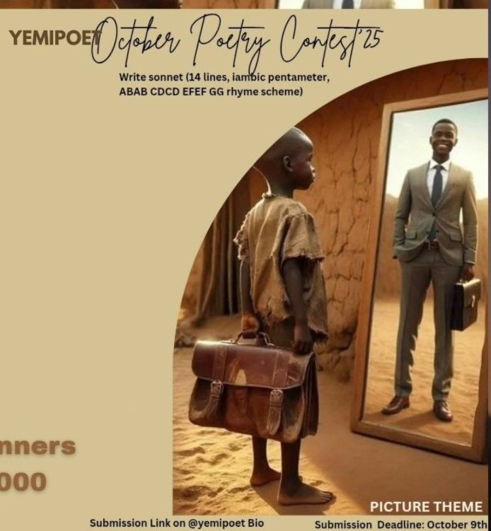 The picture prompt for the month depicted a poor boy standing before a mirror, yet seeing in his reflection an educated man, a symbol of vision, transformation, and hope. This theme encouraged poets to explore the strength of self-belief, the courage to dream beyond their present limitations and reality, and the power of hope to reshape destinies.